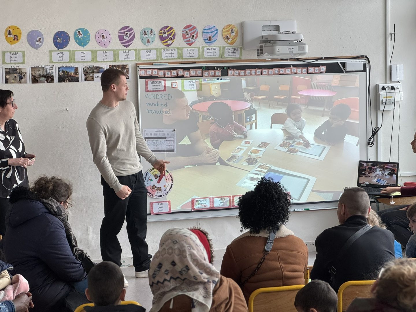 Avec maitresse Aline, nous avons appris une chanson qui dit bonjour dans toutes les langues.
